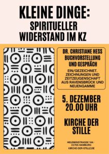 Alltagskulturelle und künstlerische Ausdrucksformen fanden sich in allen Konzentrationslagern, trotz der Bedingungen von Zwang und Gewalt. Nur wenige dieser Artefakte sind im heutigen visuellen Gedächtnis verankert. In ihrer Studie hat sich Christiane Heß vor allem mit Zeichnungen aus den Konzentrationslagern Ravensbrück und Neuengamme auseinandergesetzt. Sie stellt diese vor und wirft dabei auch einen Blick auf eine religiöse Praxis, von der kleinformatige Objekte und Skizzen erzählen können.